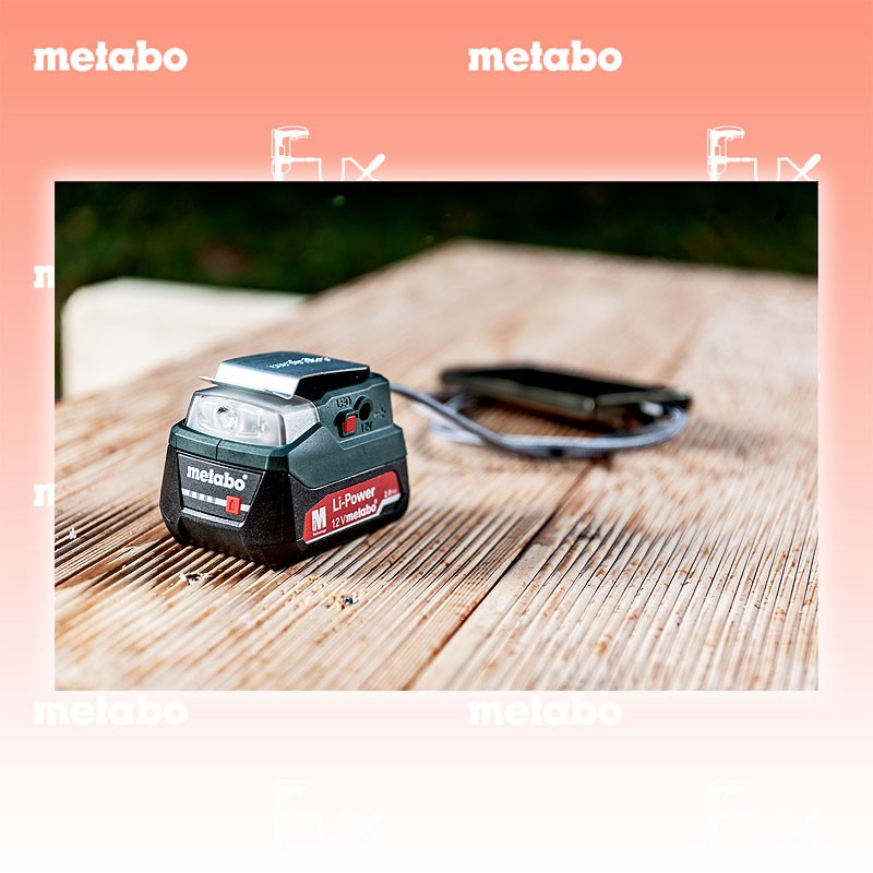 Zu "Akku Power-Adapter " von Metabo Metabo PowerMaxx PA 12 LED-USB Akku-Power-Adapter Bestell- und Artikelnummer: 600298000 Kompakter Multifunktionsadapter, einsetzbar als Ladestation, Energiequelle und Lampe Schneller USB-Anschluss zum Laden und Betreiben von USB-Geräten (max. Ladestrom 2 A) 12-Volt-Anschluss für die Metabo Heizjacke Betrieb mit allen Li-Power und LiHD Schiebesitz-Akkupacks mit 12 Volt OHNE AKKUS UND LADEGERÄT Standard-Ausrüstung ohne Akkupack, ohne Ladegerät Listenpreis CHF 49.00 Fuxpreis CHF 42.00 inklusive 8.1% MwSt Versand CHF 15.00 Kein Grauimport! Produkt bestellen 1 Stück 2 Stück 3 Stück 4 Stück 5 Stück 6 Stück 7 Stück 8 Stück 9 Stück 10 Stück 11 Stück 12 Stück 13 Stück 14 Stück 15 Stück 16 Stück 17 Stück 18 Stück 19 Stück 20 Stück 21 Stück 22 Stück 23 Stück 24 Stück 25 Stück 26 Stück 27 Stück 28 Stück 29 Stück 30 Stück 31 Stück 32 Stück 33 Stück 34 Stück 35 Stück 36 Stück 37 Stück 38 Stück 39 Stück 40 Stück 41 Stück 42 Stück 43 Stück 44 Stück 45 Stück 46 Stück 47 Stück 48 Stück 49 Stück 50 Stück Alle Angaben ohne Gewähr und solange Vorrat reicht!Wiederverkäufer werden?Lehrlingsrabatt? Produkt als PDF AKTION 15%