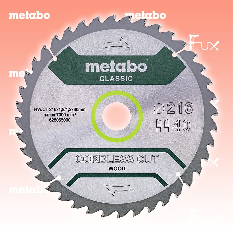 Zu "Kreissägeblätter »cordless cut« wood " von Metabo Metabo Kreissägeblatt 216 mm Classic" Bestell- und Artikelnummer: 628654000 Maximale Laufzeit für Akku-Sägen durch extra dünne Stammblattdicke und Schnittbreite Deutlich mehr Schnitte pro Akkuladung im Vergleich zu Standard-Sägeblättern bei gleich hoher Standzeit Zum Kreissägeblatt-Finder Technische Daten Durchmesser x Schnittbreite x Bohrung 216 x 1.8 x 30 mm Material HW/CT Zähnezahl 40 Zahnform WZ Stammblattdicke 1.2 mm Spanwinkel 5° geeignet für KS 18 LTX 216 / KGS 18 LTX 216 Verpackung Blister Standard-Ausrüstung Verkaufseinheit 1 Stk. Geliefert im Blister Listenpreis CHF 37.50 Fuxpreis CHF 32.00 inklusive 8.1% MwSt Versand CHF 15.00 Kein Grauimport! Produkt bestellen Verkaufseinheit 1 Stk. 1 Stück 2 Stück 3 Stück 4 Stück 5 Stück 6 Stück 7 Stück 8 Stück 9 Stück 10 Stück 11 Stück 12 Stück 13 Stück 14 Stück 15 Stück 16 Stück 17 Stück 18 Stück 19 Stück 20 Stück 21 Stück 22 Stück 23 Stück 24 Stück 25 Stück 26 Stück 27 Stück 28 Stück 29 Stück 30 Stück 31 Stück 32 Stück 33 Stück 34 Stück 35 Stück 36 Stück 37 Stück 38 Stück 39 Stück 40 Stück 41 Stück 42 Stück 43 Stück 44 Stück 45 Stück 46 Stück 47 Stück 48 Stück 49 Stück 50 Stück Alle Angaben ohne Gewähr und solange Vorrat reicht!Wiederverkäufer werden?Lehrlingsrabatt? Produkt als PDF AKTION 15%