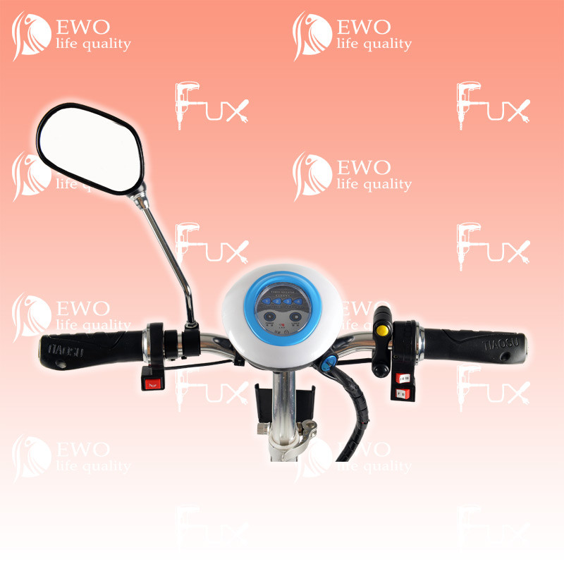 Der EWO ist so konzipiert, dass Du ihn als Gehhilfe benutzen kannst. Im eingeklappten Zustand schiebst Du ihn einfach vor dich her. An Steigungen oder Bordsteinen kannst Du dich, dank des Elektromotors, unterstützen lassen.