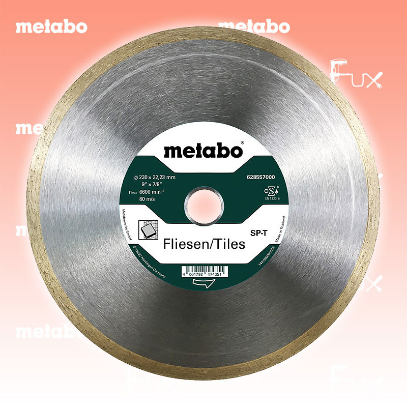 Zu "Qualitätsklasse »professional« / TP" von Metabo Metabo Diamanttrennscheibe 230 mm Bestell- und Artikelnummer: 628557000 Spezielle Scheibe für alle Arten von Fliesen, glasiert und unglasiert, Natursteinplatten Gute Schnittleistung und optimale Standzeit; Gesinterter Schneidrand; Segmenthöhe: 7 mm Technische Daten Durchmesser x Bohrung 230 x 22.23 mm Segmentabmessungen 1,65 x 10 mm Max. Drehzahl 6600 /min Standard-Ausrüstung Verkaufseinheit 1 Stk. Listenpreis CHF 40.00 Fuxpreis CHF 34.00 inklusive 8.1% MwSt Versand CHF 15.00 Kein Grauimport! Produkt bestellen Verkaufseinheit 1 Stk. 1 Stück 2 Stück 3 Stück 4 Stück 5 Stück 6 Stück 7 Stück 8 Stück 9 Stück 10 Stück 11 Stück 12 Stück 13 Stück 14 Stück 15 Stück 16 Stück 17 Stück 18 Stück 19 Stück 20 Stück 21 Stück 22 Stück 23 Stück 24 Stück 25 Stück 26 Stück 27 Stück 28 Stück 29 Stück 30 Stück 31 Stück 32 Stück 33 Stück 34 Stück 35 Stück 36 Stück 37 Stück 38 Stück 39 Stück 40 Stück 41 Stück 42 Stück 43 Stück 44 Stück 45 Stück 46 Stück 47 Stück 48 Stück 49 Stück 50 Stück Alle Angaben ohne Gewähr und solange Vorrat reicht!Wiederverkäufer werden?Lehrlingsrabatt? Produkt als PDF AKTION 15%