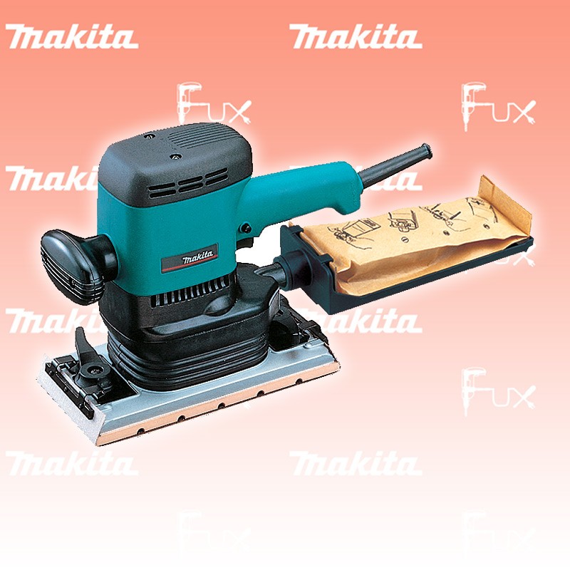 Zu "Schwingschleifer" von Makita Makita 9046 J Schwingschleifer Bestell- und Artikelnummer: 9046J Starker Motor mit 600 Watt für hohe Abtragleistung durch Getriebeuntersetzung Staubdichte Motorabdichtung Wartungsfreies Getriebe (Nachschmieren entfällt) Fremdabsaugung anschließbar Schleifpapierwechsel durch Spannvorrichtung oder Klettverschluß Technische Daten Leistungsaufnahme 600 W Schwingungen 6.000 min-1 Schwingkreis 5 mm Papiergröße 115 x 280 mm Papiergröße Klett 115 x 232 mm Schleiffläche 115 x 229 mm Gewicht 3,0 kg Standard-Ausrüstung Schleifpapier Staubsack Makpac - B Transportkoffer Geliefert im Koffer Zubehör Verbrauchsmaterial Listenpreis CHF 349.00 Fuxpreis CHF 262.00 inklusive 8.1% MwSt Versand CHF 15.00 Kein Grauimport! Produkt bestellen 1 Stück 2 Stück 3 Stück 4 Stück 5 Stück 6 Stück 7 Stück 8 Stück 9 Stück 10 Stück Alle Angaben ohne Gewähr und solange Vorrat reicht!Wiederverkäufer werden?Lehrlingsrabatt? Produkt als PDF AKTION 25%