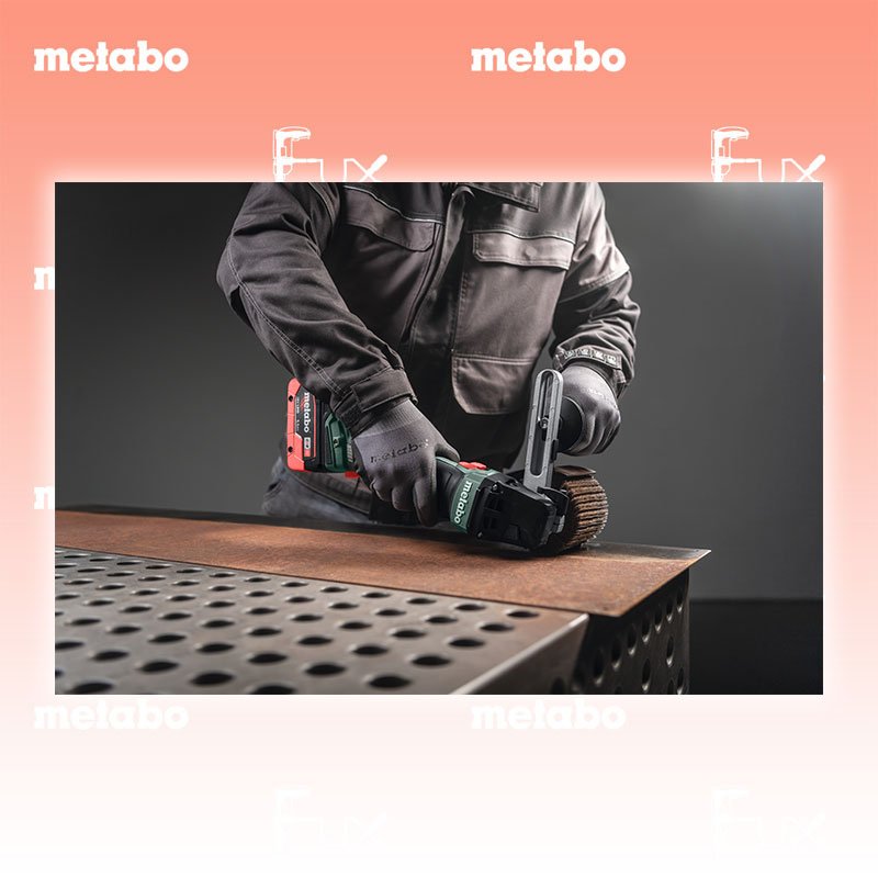 Zu "Akku Satiniermaschine" von Metabo Metabo SVB 18 LTX 200 Akku-Satiniermaschine Bestell- und Artikelnummer: 601766840 FULL Service: 36 Monate zum Nulltarif für Sie! Weitere Infos zum FULL Service Dieses Produkt ist CAS kompatibel! Weitere Infos zu CAS Kompakte Akku-Satiniermaschine mit Brushless-Motor zum Schleifen, Satinieren, Bürsten und Hochglanzpolieren von Metallen Kraftvoller Brushlessmotor für schnellen Arbeitsfortschritt und höchste Effizienz Variable Drehzahleinstellung mit Stellrad zum Arbeiten mit materialgerechten Drehzahlen, die unter Last konstant bleiben Fast Brake: Auslaufbremse für mehr Sicherheit durch schnelles Stoppen des Einsatzwerkzeugs Spindelarretierung und werkzeuglose Spannmutter für schnellen Zubehörwechsel Schnelles und werkzeugloses Verstellen von Schutzblech und Zusatzhandgriff Akkupack drehbar in 90°-Grad-Schritten für beste Ergonomie in jeder Arbeitsposition Abnehmbarer Staubschutzfilter als Motorschutz vor groben Partikeln Elektronischer Überlastschutz, Sanftanlauf und Wiederanlaufschutz Mit metaBOX, der intelligenten Lösung für Transport und Aufbewahrung Viele Marken, ein Akku-System: Dieses Produkt ist kombinierbar mit allen 18V-Akkupacks und Ladegeräten der CAS Marken: www.cordless-alliance-system.com OHNE AKKUS UND LADEGERÄT Technische Daten Leerlaufdrehzahl 600 - 2.500 /min Spindelgewinde M 14 Schleifkörperdurchmesser 200 mm Schleifkörperbreite 50 - 100 mm Akkuspannung 18 V Gewicht (ohne Akkupack) 2.8 kg Standard-Ausrüstung Zusatzhandgriff Staubschutzfilter Einmaulschlüssel metaBOX 340 ohne Akkupack, ohne Ladegerät Geliefert im Koffer Zubehör Verbrauchsmaterial Listenpreis CHF 659.00 Fuxpreis CHF 560.00 inklusive 8.1% MwSt Frankolieferung Kein Grauimport! Produkt bestellen Das Produkt ist momentan nicht lieferbar!Bestätigen sie, dass sie damit einverstanden sind! 1 Stück 2 Stück 3 Stück 4 Stück 5 Stück 6 Stück 7 Stück 8 Stück 9 Stück 10 Stück Alle Angaben ohne Gewähr und solange Vorrat reicht!Wiederverkäufer werden?Lehrlingsrabatt? Produkt als PDF AKTION 15%