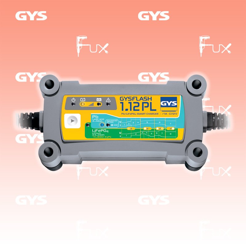 Das GYSFLASH 1.12 PL ist ein Ladegerät für Fahrzeuge mit 12V- Blei-Säure- und Lithium-Eisen-Phosphat (LiFePO4) -Batterien. Es verfügt über 2 intelligente Ladekennlinien passend zu den aktuellen