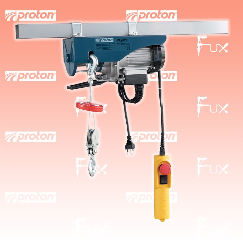 Zu "Seilwinden elektrisch" von Proton Proton SW-250M Seilwinde elektrisch Bestell- und Artikelnummer: 180250 Elektrische Seilwinde mit Überlastschutz und Endschalter bei Seilende. Der Sicherheitsschalter verhindert das falsche Aufspulen des Seiles. Endschalter bei Seilende Überlastschutz Mit Montagehalter und Umlenkrolle (ohne Vierkantrohr) Mit Sicherheitsschalter gegen falsches Aufspulen des Seiles Befestigungsbügel Abmessungen 45 x 45 mm Stromkabel Länge 55 cm Technische Daten Tragkraft 125 / 250 kg Leistung 500 W Spannung 230 V Seil Durchmesser 3 mm Hubhöhe 12 m Hubhöhe mit Umlenkrolle 6 m Hubgeschwindigkeit 10 / 5 m/min-1 Seillänge 12 m Abmessung 315 x 130 x 160 mm Gewicht 10.5 kg Zubehör Listenpreis CHF 199.00 Fuxpreis CHF 169.00 inklusive 8.1% MwSt Versand CHF 15.00 Kein Grauimport! Produkt bestellen 1 Stück 2 Stück 3 Stück 4 Stück 5 Stück 6 Stück 7 Stück 8 Stück 9 Stück 10 Stück Alle Angaben ohne Gewähr und solange Vorrat reicht!Lehrlingsrabatt? Produkt als PDF AKTION 15%
