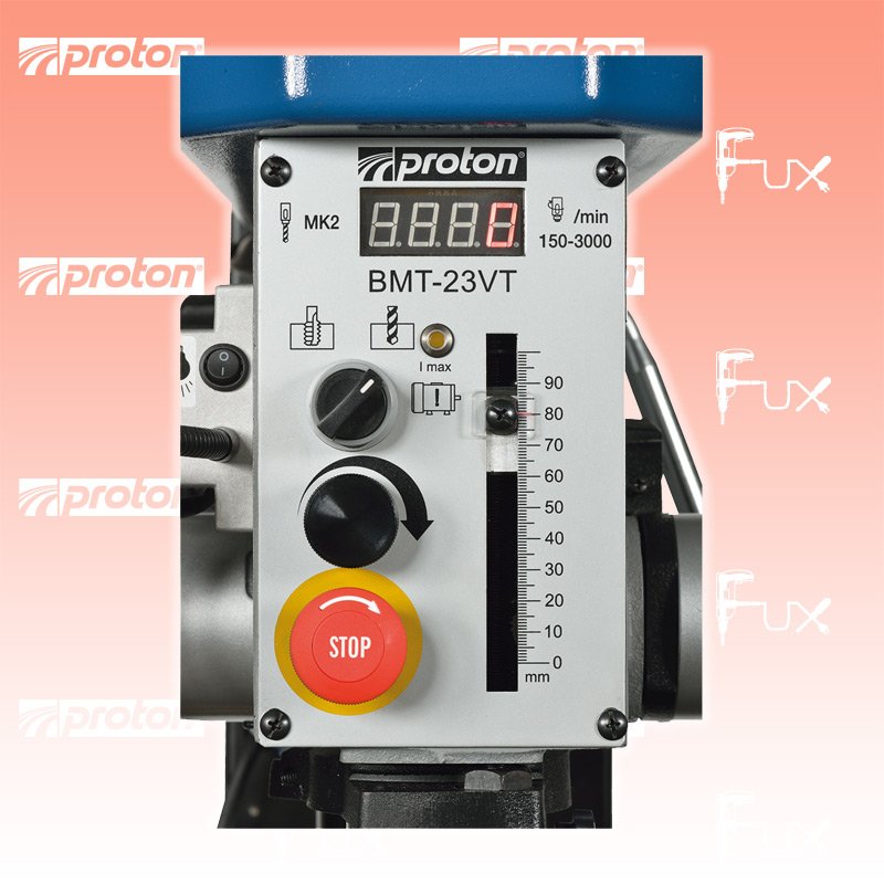 Zu "Tischbohrmaschinen" von Proton Proton BMT-23VT Tischbohrmaschine Bestell- und Artikelnummer: 120607 1-touriger Motor Drehzahlregulierung mittels Keilriemen mit Schnellspannbohrfutter 1 - 16 mm, Bohrfutterschutz und Not-Ausschalter Sicherheitssystem gegen automatischen Anlauf der Maschine Elektrisch gesicherter Riemendeckel Bohrtisch mit 4 T-Nuten, schwenkbar Tischhöhe über Zahnstange verstellbar LED-Arbeitsleuchte Technische Daten Motorspannung / -leistung 230 V / 0.75 kW Bohrleistung in Stahl 20 mm Bohrhub 90 mm Bohrspindel MK2 Anzahl Drehzahlen variabel mit 2 Stufen Flachriemen Drehzahlregulierung stufenlos Drehzahlbereich 150 - 1250 / 350 - 2500 min⁻¹ Drehzahlanzeige digital ✓ Tischbreite (I) 285 mm Tischtiefe (H) 325 mm Tiefe (B) 720 mm Breite (G) 350 mm Säule (E) 80 mm Spindelnase / Grundplatte (C) 640 mm Höhe (A) 1090 mm Gewindeschneidfunktion ✓ Kühlsystem integriert nein LED-Arbeitsleuchte ✓ Schnellspannbohrfutter ✓ T-Nutenbreite 12 mm Tischbelastung 30 kg Ausladung (D) 180 mm Deckel-Endschalter ✓ Notausschalter ✓ Bohrfutterschutz ✓ Gewicht 118 kg Standard-Ausrüstung Schnellspannbohrfutter 1 – 16 mm Zubehör Listenpreis CHF 3'290.00 Fuxpreis CHF 2'797.00 inklusive 8.1% MwSt Frankolieferung Kein Grauimport! Produkt bestellen 1 Stück 2 Stück 3 Stück 4 Stück 5 Stück 6 Stück 7 Stück 8 Stück 9 Stück 10 Stück Alle Angaben ohne Gewähr und solange Vorrat reicht!Lehrlingsrabatt? Produkt als PDF AKTION 15%