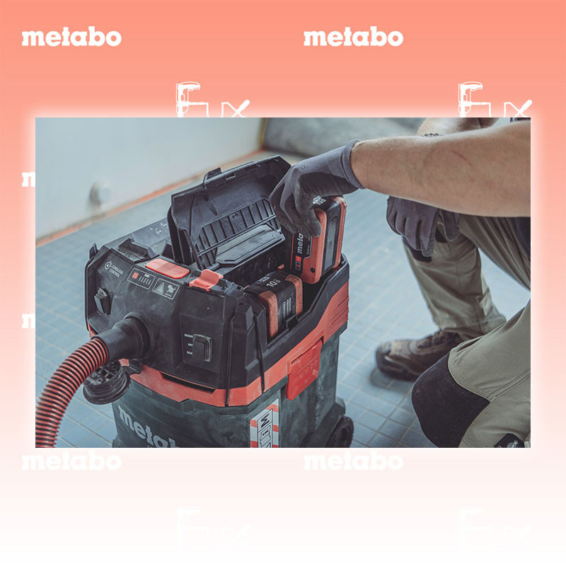 Zu "Akku Sauger " von Metabo Metabo ASR 36-18 H 30 PC-CC Akku-Sauger Bestell- und Artikelnummer: 602075850 FULL Service: 36 Monate zum Nulltarif für Sie! Weitere Infos zum FULL Service Dieses Produkt ist CAS kompatibel! Weitere Infos zu CAS Kompakter, vielseitig einsetzbarer Akku-Sauger der Staubklasse H mit integrierter Filterabreinigung CordlessControl: der Sauger startet/stoppt automatisch beim Ein-/Ausschalten des am Schlauch angeschlossenen Akku-Werkzeugs von Metabo oder anderen Marken Nass-/Trockensauger mit gewerblicher Zulassung Maximaler Anwenderschutz: zertifiziert durch EU-Norm für Stäube der Staubklasse H PressClean: manuelle Filterabreinigung durch starken Luftstrom bei Schalterbetätigung am Sauger in den Arbeitspausen Eco-Modus für längere Laufzeit pro Akkuladung, Boost-Modus für maximale Leistung Nachlaufautomatik zum völligen Entleeren des Saugschlauches Saugstopp beim Nasssaugen, wenn die maximale Füllhöhe erreicht wird Warnsignal bei Unterschreitung des Mindestvolumenstroms zum Schutz des Anwenders Antistatik-Grundausstattung verhindert statische Aufladung bei Verwendung des geeigneten Zubehörs Schnelles Koppeln von metaBOXen mit Werkzeug und Zubehör auf dem Sauger für einfachen Standortwechsel Mitgeliefertes Saugerzubehör mit Quick-System für schnelles Umrüsten im Einsatz Einfacher Transport dank Schlauchhalterung und Depot für Rohre und Düsen Staub- und spritzwassergeschützes Akkufach mit verschließbarer Klappe Viele Marken, ein Akku-System: Dieses Produkt ist kombinierbar mit allen 18V-Akkupacks und Ladegeräten der CAS Marken: www.cordless-alliance-system.com OHNE AKKUS UND LADEGERÄT Technische Daten Akkuspannung 18 V Luftleistung max. 3.300 l/min Unterdruck 140 hPa (mbar) Filterfläche 5.000 / 542 cm2 Behältervolumen 30 l Saugschlauch-Ø 32 mm Schlauchlänge 3,2 m Gewicht ohne Akkupack 10,3 kg Standard-Ausrüstung Antistatik-Saugschlauch Quick (Ø 32 mm / 3,2 m) CordlessControl Sender mit Fixierband Ø 35 mm 3 Saugrohre (verchromt) Saugdüse (120 mm breit) Bodendüse (360 mm breit) Fugendüse Bürstendüse Anschlussmuffe Quick Ø 28/35 mm Anschlussmuffe Quick Ø 40/45 mm, Handgriff-Zwischenstück Quick Premium Spezial-Filterbeutel für H-Klasse ohne Akkupack und Ladegerät Zubehör Verbrauchsmaterial Listenpreis CHF 639.00 Fuxpreis CHF 543.00 inklusive 8.1% MwSt Frankolieferung Kein Grauimport! Produkt bestellen 1 Stück 2 Stück 3 Stück 4 Stück 5 Stück 6 Stück 7 Stück 8 Stück 9 Stück 10 Stück Alle Angaben ohne Gewähr und solange Vorrat reicht!Wiederverkäufer werden?Lehrlingsrabatt? Produkt als PDFVideo LiHD 1Video LiHD 2 AKTION 15%