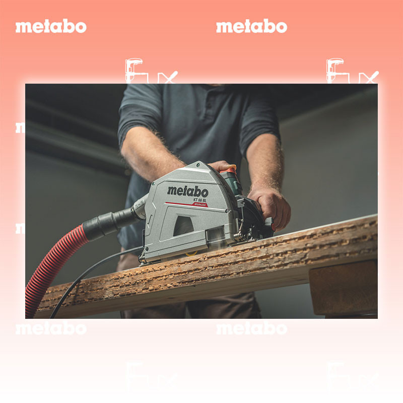 Zu "Tauchkreissäge" von Metabo Metabo KT 66 BL Tauchkreissäge mit Führungsschiene Bestell- und Artikelnummer: 691219520 Tauchkreissäge mit Brushless-Motor für kraftvolles Eintauchen und präzise Sägeschnitte bis 66 mm Tiefe Spielfreier, justierbarer Sitz auf den Führungsschienen von Metabo und anderen Herstellern für exakte Schnittergebnisse Vielseitiger Einsatz durch variable Drehzahl für unterschiedliche Materialien Doppelanzeiger für exaktes Einstellen der Schnitttiefe mit und ohne Führungsschiene Mit Hinterschnittfunktion für passgenaue Übergänge, 0°- und 45°-Position nachjustierbar für höchste Schnittgenauigkeit Schnelles und einfaches Wechseln des Sägeblatts durch Hebel für einrastende Tauchposition und Spindelstopp Wandnahes Sägen möglich Sichtfenster in der Schutzhaube für exakte Schnittführung Auslaufbremse stoppt das Sägeblatt besonders schnell und erhöht die Sicherheit Staubarmes Sägen dank dem großvolumigen Staubsack oder durch Anschließen eines Saugers Sägespäne-Auswurfstutzen für jede Arbeitsposition individuell dreh- und arretierbar Praktischer Parallelanschlag als Zubehör verfügbar (Bestell-Nr. 628029000) 601166180 ohne Führungsschien Technische Daten Nennaufnahmeleistung 1.200 W Max. Schnitttiefe bei 90° 66 mm Max. Schnitttiefe bei 45° 43 mm Max. Schnitttiefe mit Führungsschiene 61 mm Sägeblatt-Ø x Bohrung 165 x 20 mm Schwenkbereich von/bis - 1 / + 46 ° Leerlaufdrehzahl 2.250 - 5.000 /min Gewicht ohne Netzkabel 4,9 kg Kabellänge 4 m Standard-Ausrüstung Führungsschiene FS 160 (160 cm) Sägeblatt"precision cut wood - classic" 165x20 Z42 WZ 5° Staubfangbeutel Sechskantschlüssel metaBOX 340 Geliefert im Koffer Zubehör Verbrauchsmaterial Listenpreis CHF 719.00 Fuxpreis CHF 611.00 inklusive 8.1% MwSt Versand CHF 25.00 Kein Grauimport! Produkt bestellen 1 Stück 2 Stück 3 Stück 4 Stück 5 Stück 6 Stück 7 Stück 8 Stück 9 Stück 10 Stück Option: Bestellen Sie das Produkt zum Listenpreis, und erhalten dafür 36 Monate Fux ALL-IN-ServiceInfos Alle Angaben ohne Gewähr und solange Vorrat reicht!Wiederverkäufer werden?Lehrlingsrabatt? Produkt als PDF AKTION 15%