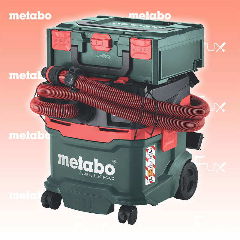 Zu "Akku Sauger " von Metabo Metabo AS 36-18 L 20 PC Akku-Sauger Bestell- und Artikelnummer: 602071850 FULL Service: 36 Monate zum Nulltarif für Sie! Weitere Infos zum FULL Service Dieses Produkt ist CAS kompatibel! Weitere Infos zu CAS Kompakter, vielseitig einsetzbarer Akku-Sauger der Staubklasse L mit integrierter Filterabreinigung Nass-/Trockensauger mit gewerblicher Zulassung Anwenderschutz: zertifiziert nach EU-Norm für Stäube der Staubklasse L PressClean: manuelle Filterabreinigung durch starken Luftstrom bei Schalterbetätigung am Sauger in den Arbeitspausen Eco-Modus für längere Laufzeit pro Akkuladung, Boost-Modus für maximale Leistung Nachlaufautomatik zum völligen Entleeren des Saugschlauches Saugstopp beim Nasssaugen, wenn die maximale Füllhöhe erreicht wird Antistatik-Grundausstattung verhindert statische Aufladung bei Verwendung des geeigneten Zubehörs Schnelles Koppeln von metaBOXen mit Werkzeug und Zubehör auf dem Sauger für einfachen Standortwechsel Mitgeliefertes Saugerzubehör mit Quick-System für schnelles Umrüsten im Einsatz Einfacher Transport dank Schlauchhalterung und Depot für Rohre und Düsen Staub- und spritzwassergeschützes Akkufach mit verschließbarer Klappe Viele Marken, ein Akku-System: Dieses Produkt ist kombinierbar mit allen 18V-Akkupacks und Ladegeräten der CAS Marken: www.cordless-alliance-system.com OHNE AKKUS UND LADEGERÄT Technische Daten Akkuspannung 18 V Luftleistung max. 3.300 l/min Unterdruck 140 hPa (mbar) Filterfläche 3.500 Behältervolumen 20 l Saugschlauch-Ø 32 mm Schlauchlänge 3,2 m Gewicht ohne Akkupack 9.2 kg Standard-Ausrüstung Antistatik-Saugschlauch Quick (Ø 32 mm / 3,2 m) Saugdüse (120 mm breit) Bodendüse (300 mm breit) Fugendüse Bürstendüse Anschlussmuffe Quick Ø 28/35 mm Handgriff-Zwischenstück Quick Professional ohne Akkupack, ohne Ladegerät 3 Saugrohre aus Kunststoff Vliesfilterbeutel Zubehör Verbrauchsmaterial Listenpreis CHF 319.00 Fuxpreis CHF 271.00 inklusive 8.1% MwSt Frankolieferung Kein Grauimport! Produkt bestellen 1 Stück 2 Stück 3 Stück 4 Stück 5 Stück 6 Stück 7 Stück 8 Stück 9 Stück 10 Stück Alle Angaben ohne Gewähr und solange Vorrat reicht!Wiederverkäufer werden?Lehrlingsrabatt? Produkt als PDFVideo LiHD 1Video LiHD 2 AKTION 15%