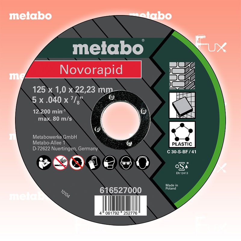 Zu "Qualitätsklasse C 30 S Trennscheiben" von Metabo Metabo Trennscheibe Stein 125 mm Bestell- und Artikelnummer: 616527000 Dünne Trennscheibe für den universellen Gebrauch, wie z.B. zur Bearbeitung von Stein, Fliesen, Kuststoffe, etc. Gute Schnittleistung bei guter Standzeit Geringer Materialverbrauch, kraftsparend, geringe Maschinenbelastung Härte: hart Arbeitshöchstgeschwindigkeit 80 m/s Technische Daten Qualitätsklasse C 30-S Durchmesser x Dicke x Bohrung 125 x 1 x 22.23 mm Ausführung gerade Max. Drehzahl 12200 /min Standard-Ausrüstung Verkaufseinheit 25 Stk. Listenpreis CHF 62.50 Fuxpreis CHF 53.00 inklusive 8.1% MwSt Versand CHF 15.00 Kein Grauimport! Produkt bestellen Verkaufseinheit 25 Stk. 1 Stück 2 Stück 3 Stück 4 Stück 5 Stück 6 Stück 7 Stück 8 Stück 9 Stück 10 Stück 11 Stück 12 Stück 13 Stück 14 Stück 15 Stück 16 Stück 17 Stück 18 Stück 19 Stück 20 Stück 21 Stück 22 Stück 23 Stück 24 Stück 25 Stück 26 Stück 27 Stück 28 Stück 29 Stück 30 Stück 31 Stück 32 Stück 33 Stück 34 Stück 35 Stück 36 Stück 37 Stück 38 Stück 39 Stück 40 Stück 41 Stück 42 Stück 43 Stück 44 Stück 45 Stück 46 Stück 47 Stück 48 Stück 49 Stück 50 Stück Alle Angaben ohne Gewähr und solange Vorrat reicht!Wiederverkäufer werden?Lehrlingsrabatt? Produkt als PDF AKTION 15%