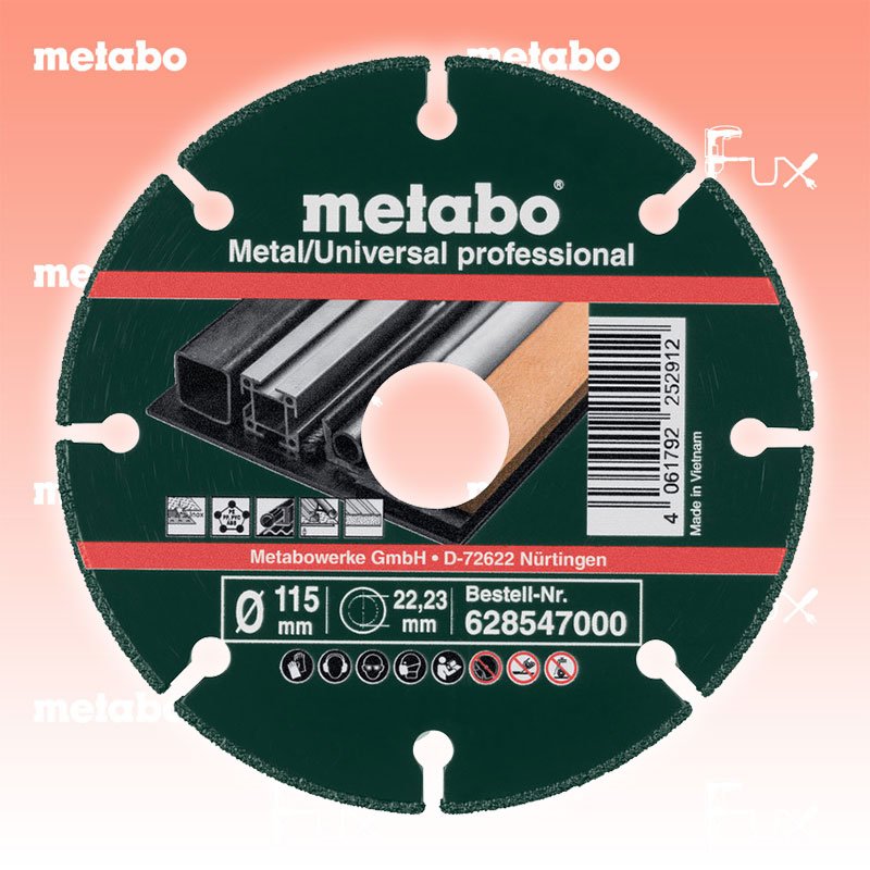 Zu "Winkelschleifer Diamanttrennscheibe" von Metabo Metabo Diamanttrennscheibe 115 mm Bestell- und Artikelnummer: 628547000 Vakuum-gelötete Diamanttrennscheibe für nahezu alle Metallwerkstoffe; sehr flexibel einsetzbar auch in verschiedenen Materialien auf Grund des Vakuumlöt Verfahrens, wie z.B. Rohre, Profile, Kunststoffe,.. Reduzierter Funkenflug, reduzierte Geruchs- und Staubbildung Extrem hohe Lebensdauer in Metall Konstante Schnitttiefe über die gesamte Lebensdauer Technische Daten Durchmesser x Bohrung 115 x 22.23 mm Segmentabmessungen 1.3 x 1.5 mm Segmentanzahl 8 Max. Drehzahl 13300 /min Standard-Ausrüstung Verkaufseinheit 10 Stk. Geliefert im Blister Listenpreis CHF 300.00 Fuxpreis CHF 255.00 inklusive 8.1% MwSt Frankolieferung Kein Grauimport! Produkt bestellen Verkaufseinheit 10 Stk. 1 Stück 2 Stück 3 Stück 4 Stück 5 Stück 6 Stück 7 Stück 8 Stück 9 Stück 10 Stück 11 Stück 12 Stück 13 Stück 14 Stück 15 Stück 16 Stück 17 Stück 18 Stück 19 Stück 20 Stück 21 Stück 22 Stück 23 Stück 24 Stück 25 Stück 26 Stück 27 Stück 28 Stück 29 Stück 30 Stück 31 Stück 32 Stück 33 Stück 34 Stück 35 Stück 36 Stück 37 Stück 38 Stück 39 Stück 40 Stück 41 Stück 42 Stück 43 Stück 44 Stück 45 Stück 46 Stück 47 Stück 48 Stück 49 Stück 50 Stück Alle Angaben ohne Gewähr und solange Vorrat reicht!Wiederverkäufer werden?Lehrlingsrabatt? Produkt als PDF AKTION 15%