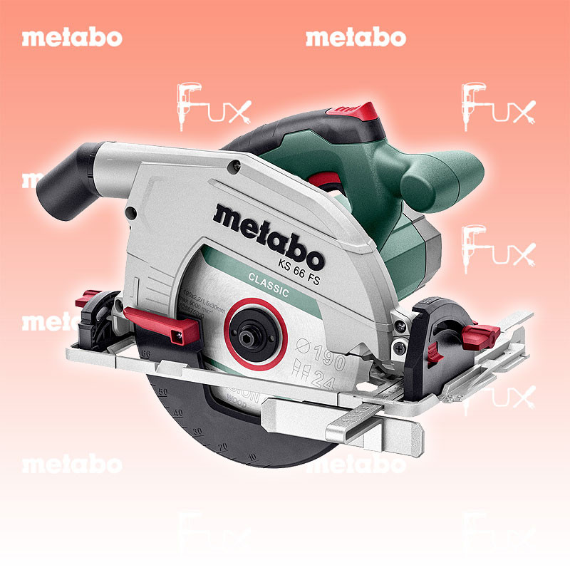 Zu "Handkreissägen" von Metabo Metabo KS 66 FS Handkreissäge Bestell- und Artikelnummer: 601066520 Robuste Handkreissäge, direkt einsetzbar auf Führungsschienen von Metabo und anderen Herstellern für präzise, lange Schnitte Schnelle, exakte Kappschnitte durch einfaches Koppeln mit einer Metabo Kappschiene KFS (Zubehör) Leichte Führungsplatte aus Aluminiumdruckguss Griffbereich mit rutschfester Softgrip-Oberfläche Gut sichtbarer Schnittanzeiger zum Sägen nach Anriss 0°-Position nachjustierbar für höchste Schnittgenauigkeit Absaugmöglichkeit durch Anschluss eines Allessaugers Späneauswurf lenkbar durch drehbaren Absaugstutzen Technische Daten Nennaufnahmeleistung 1500 W Abgabeleistung 840 W Max. Schnitttiefe bei 90° 66 mm Max. Schnitttiefe bei 45° 47 mm Max. Schnitttiefe mit Führungsschiene 61 mm Sägeblatt-Ø x Bohrung 190 x 30 mm Schwenkbereich von/ bis 0 / + 47 ° Leerlaufdrehzahl 5000 /min Drehzahl bei Nennlast 3800 /min Max. Schnittgeschwindigkeit 50 m/s Gewicht ohne Netzkabel 4.9 kg Kabellänge 4 m Standard-Ausrüstung Hartmetall-Kreissägeblatt (24 Zähne) Parallelanschlag Sechskantschlüssel metaBOX 340 Geliefert im Koffer Zubehör Verbrauchsmaterial Listenpreis CHF 339.00 Fuxpreis CHF 288.00 inklusive 8.1% MwSt Frankolieferung Kein Grauimport! Produkt bestellen 1 Stück 2 Stück 3 Stück 4 Stück 5 Stück 6 Stück 7 Stück 8 Stück 9 Stück 10 Stück Option: Bestellen Sie das Produkt zum Listenpreis, und erhalten dafür 36 Monate Fux ALL-IN-ServiceInfos Alle Angaben ohne Gewähr und solange Vorrat reicht!Wiederverkäufer werden?Lehrlingsrabatt? Produkt als PDF AKTION 15%
