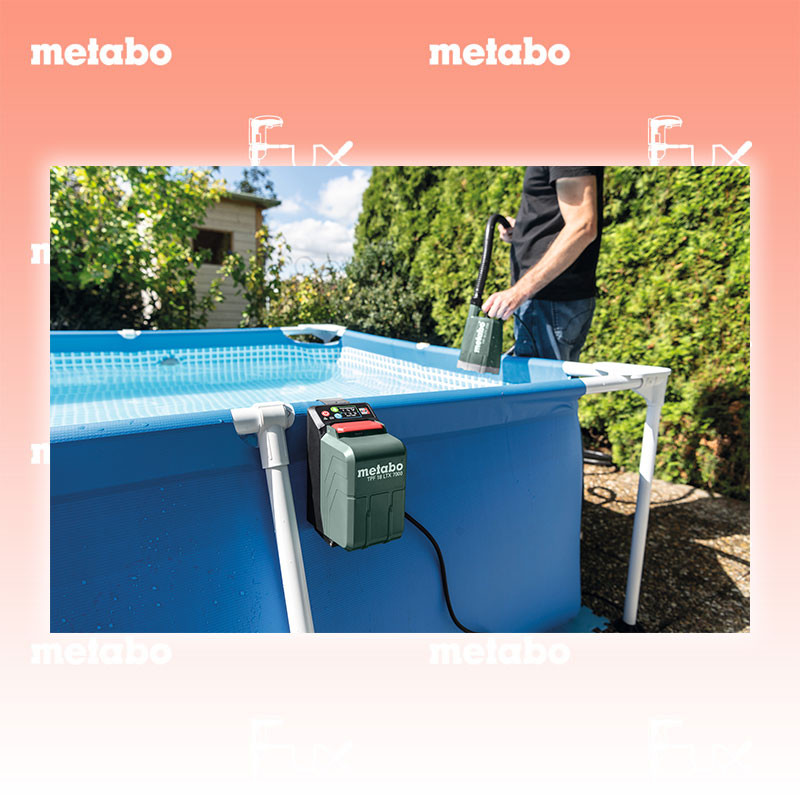 Zu "Akku Tauch- und Regenfasspumpe" von Metabo Metabo TPF 18 LTX 7000 Akku Tauch- und Regenfasspumpe Bestell- und Artikelnummer: 601748850 FULL Service: 36 Monate zum Nulltarif für Sie! Weitere Infos zum FULL Service Leistungsstarke Akku-Tauchpumpe zum Auspumpen von Klarwasser aus Behältern, Wasserbecken und überschwemmten Kellern Flachabsaugend bis zu einem Restwasserstand von 1-2 mm Externe Akkubox zum Schutz des Akkus vor Feuchtigkeit, einfach fixierbar an Wand oder Behälter Einfache Bedienung und Kontrolle der Pumpe durch übersichtliches Bedienpanel auf der Akkubox Flexible Dosierung von Druck und Wassermenge dank drei Leistungsstufen und Regulierventil Geeignet für eine Vielzahl von Behältern dank schlanker Bauform (Ø 142 mm) und langem Kabel zur Akkubox Metabo Pump Protection: automatischer Trockenlaufschutz mit LED-Anzeige zum Schutz der Pumpe und für hohe Anwendersicherheit Langlebig dank doppeltem Dichtsystem und Überlastschutz des Motors Waschbarer Filter schützt die Pumpe vor Verschmutzungen Robustes Gehäuse aus schlagfestem Kunststoff mit integrierter Kabelaufwicklung und Tragegriff Viele Marken, ein Akku-System: Dieses Produkt ist kombi- nierbar mit allen 18V-Akkupacks und Ladegeräten der CAS Marken: www.cordless-alliance-system.com OHNE AKKUS UND LADEGERÄT Technische Daten Akkuspannung 18 V Max. Fördermenge 7.000 l/h Max. Förderhöhe 9 m Max. Druck 0,9 bar Max. Eintauchtiefe 6 m Druckanschluss 1" Außengewinde Schutzart IP IP X8 Schutzart IP Akkubox IP X4 Kabellänge Akkubox 7 m Abmessungen 142 x 142 x 226 mm Gewicht ohne Akkupack 2,4 kg Gewicht mit Akkupack 2,8 kg Standard-Ausrüstung Multiadapter Befestigungshaken Zubehör Listenpreis CHF 139.00 Fuxpreis CHF 118.00 inklusive 8.1% MwSt Frankolieferung Kein Grauimport! Produkt bestellen 1 Stück 2 Stück 3 Stück 4 Stück 5 Stück 6 Stück 7 Stück 8 Stück 9 Stück 10 Stück Alle Angaben ohne Gewähr und solange Vorrat reicht!Wiederverkäufer werden?Lehrlingsrabatt? Produkt als PDFVideo LiHD 1Video LiHD 2 360° Ansicht AKTION 15%