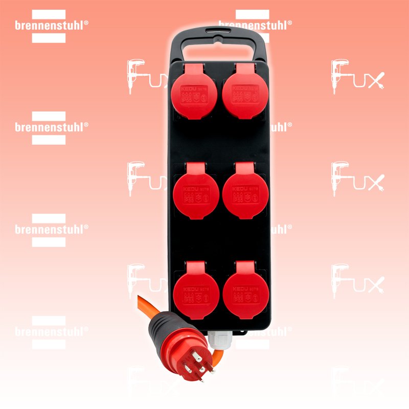 - BSV P T15/5 400V/10A, 6x T15 Steckdosen, Stecker T15, Kabel 2m N07V3V3 5G1.5 orange *CH*