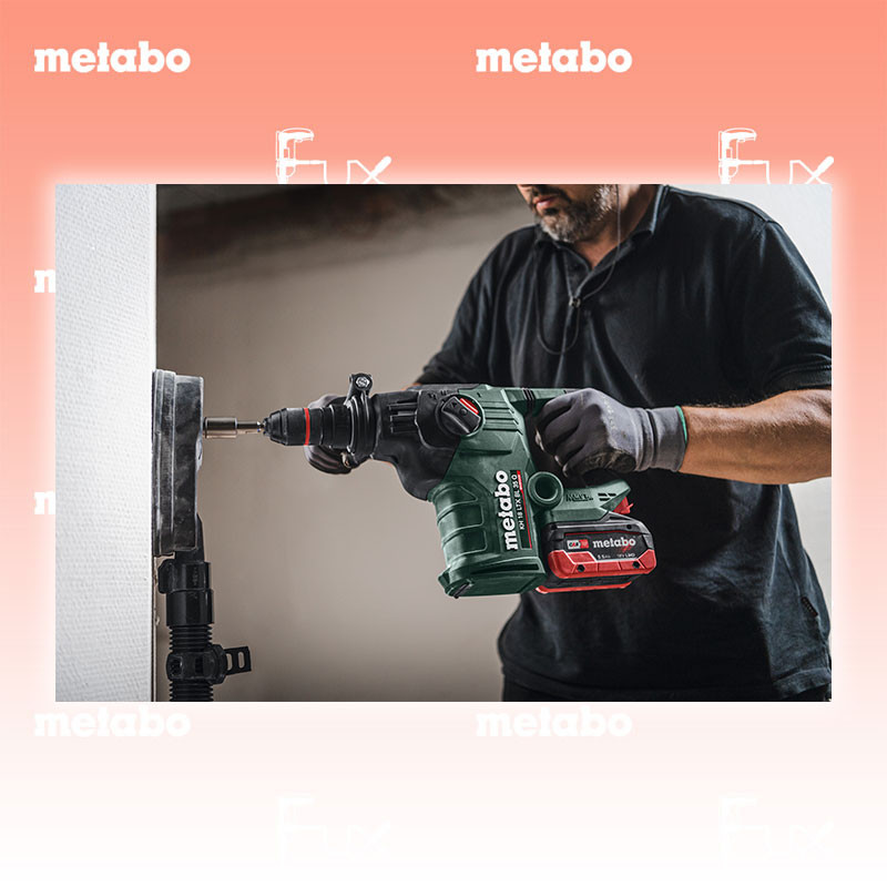 Zu "Akku Bohrhammer" von Metabo Metabo KH 18 LTX BL 35 Q Akku-Kombihammer Bestell- und Artikelnummer: 600813840 FULL Service: 36 Monate zum Nulltarif für Sie! Weitere Infos zum FULL Service Dieses Produkt ist CAS kompatibel! Weitere Infos zu CAS Stärkster SDS-plus-Akku-Hammer von Metabo zum schnellen Bohren und effizienten Meißeln in Beton und Mauerwerk Maximale Bohrleistung, Effizienz und Lebensdauer durch Brushless-Technologie und Hochleistungsschlagwerk Kombihammer mit 3 Funktionen: Hammerbohren, Bohren und Meißeln Metabo VibraTech (MVT): integriertes Dämpfungssystem zur Reduzierung der Vibrationen zum Schutz der Gesundheit Perfekte Ergonomie dank handnahem Schwerpunkt und optimierter Griffkontur Metabo Quick: Schnellwechsel zwischen SDS-Plus-Hammerfutter und Schnellspannbohrfutter für viele verschiedene Anwendungen Umschaltbar auf Linkslauf zum bequemen Lösen verkanteter Einsatzwerkzeuge Optionale Reduzierung von Drehzahl und Schlagenergie zum Anbohren und für Arbeiten in weicheren Materialien Wiederanlaufschutz: verhindert unbeabsichtigtes Anlaufen nach Akkuwechsel Doppelt sicher beim Blockieren des Bohrers: Kein Kick-back dank mechanischer Entkoppelung plus blitzschneller sensorgesteuerter Abschaltung LED-Arbeitslicht für optimale Sicht auf die Bohrstelle Viele Marken, ein Akku-System: Dieses Produkt ist kombinierbar mit allen 18V-Akkupacks und Ladegeräten der CAS Marken: www.cordless-alliance-system.com OHNE AKKUS UND LADEGERÄT Technische Daten Akkuspannung 18 V Max. Einzelschlagenergie 4.2 J ( EPTA ) Max. Schlagzahl 4.350 /min Bohr-Ø Beton mit Hammerbohrern 32 mm Leerlaufdrehzahl 0 - 810 /min Werkzeugaufnahme SDS-plus Gewicht ohne Akkupack 4,4 kg Standard-Ausrüstung Hammerfutter für Werkzeuge mit SDS-plus Schnellspannbohrfutter für Werkzeuge mit zylindrischem Schaft Zusatzhandgriff Bohrtiefenanschlag metaBOX 185 XL Geliefert im Koffer Zubehör Verbrauchsmaterial Listenpreis CHF 689.00 Fuxpreis CHF 586.00 inklusive 8.1% MwSt Frankolieferung Kein Grauimport! Produkt bestellen 1 Stück 2 Stück 3 Stück 4 Stück 5 Stück 6 Stück 7 Stück 8 Stück 9 Stück 10 Stück Alle Angaben ohne Gewähr und solange Vorrat reicht!Wiederverkäufer werden?Lehrlingsrabatt? Produkt als PDFVideo LiHD 1Video LiHD 2 AKTION 15%