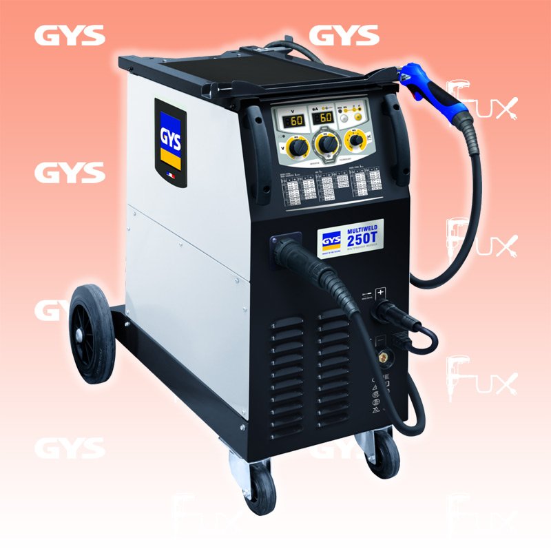 Zu "Elektroden-Inverter-Schweissgeräte " von Gys Gys MULTIWELD 250T Inverter-Schweissgerät Bestell- und Artikelnummer: 078635 Der MULTIWELD 250T ist ein halb-automatisches dreiphasiges Multiprozess-Schweissgerät für MIG/MAG, Fülldraht- und E-Hand-Schweissen. Sein intuitives Bedienfeld mit digitaler Anzeige erleichtert das präzise Einstellen. Der MULTIWELD 250T empfiehlt sich zum Schweissen von Stahl, Edelstahl und Aluminium und ist somit ideal für Schlossereien und Werkstätten. Technische Daten Spannung 400 V Fahrbar ja Stromstärke max. 16 A Generatortauglich ja Anti sticking ja Baustellentauglich Schutzklasse IP21 KVA 10.0 Flasche max. 4 m³ Massekabel Länge 4 m Leerlauf Schweissspannung 59 V Draht Durchmesser No Gas 0.9 - 1.2 mm Drahtspulen Durchmesser 200+300 Draht Durchmesser Gas 0.6 - 1.2 mm Draht Dicke 0.8 - 1.0 mm Materialstärke Stahl max 8 mm Gewicht 40 kg Zubehör Listenpreis CHF 1'777.20 Fuxpreis CHF 1'511.00 inklusive 8.1% MwSt Frankolieferung Kein Grauimport! Produkt bestellen 1 Stück 2 Stück 3 Stück 4 Stück 5 Stück 6 Stück 7 Stück 8 Stück 9 Stück 10 Stück Alle Angaben ohne Gewähr und solange Vorrat reicht!Lehrlingsrabatt? Produkt als PDF AKTION 15%