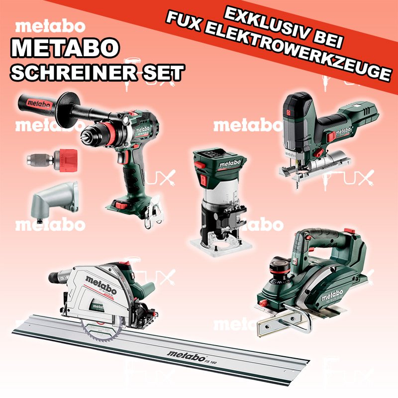 Zu "Combo Set 18 Volt " von Metabo FUX SPECIAL EXKLUSIV BEI FUX Metabo Schreiner Set 4 SOLO Bestell- und Artikelnummer: Schreiner Set 4 SOLO FULL Service: 36 Monate zum Nulltarif für Sie! Weitere Infos zum FULL Service Dieses Produkt ist CAS kompatibel! Weitere Infos zu CAS ST 18 LT 130 BL Akku-StichsägeAkkuspannung 18 V Hubzahl 1000-3.500 /min Gewicht ohne Akkupack 1.5 kgInfos BS 18 LTX BL Q I Akku-BohrschrauberAkkuspannung 18 V Drehzahl 0-550 / 0-2000 U/min Drehmoment hart / weich 130 / 65 Nm Gewicht (mit Akkupack) 2.3 kgInfos FMV 18 LTX BL 8 Akku Kantenfräse Akkuspannung 18 V Leerlaufdrehzahl 4.800 - 29.000 /min Spannbohrung der Spannzange 6 / 8 mmInfos KT 18 LTX 66 BL Akku TauchkreissägeAkkuspannung 18 V Schnitt-Tiefe bei 90° 0-66 mm Sägeblatt 165 mm Gewicht 5.3 kgInfos HO 18 LTX 20-82 Akku-Einhand-HobelAkkuspannung 18 V Hobelbreite 82 mm Spanabnahme einstellbar 0-2 mm Gewicht 3.5 KgInfos FS 160 FührungsschieneGesamtlänge 1600 mmInfos Schnellwechselbithalter »Quick«Schnellwechselbithalter »Quick« Geeignet für alle Metabo "Quick" Maschinen Bits mit 1/4 "Außensechskantantrieb Infos Schnellwechselwinkeladapter »Quick«Metabo "Quick" Maschinen mit Spannzange Ø 43 mm Magnetischer Bithalter mit 1/4 "(6,35 mm) SechskantschaftInfos Registriere die in diesem Set vorhandenen Metabo Maschinen auf metabo.ch, und ergattere dir bis zu 5 Gratis Akkus!Zusätzlich offerieren wir zu diesem Set einen Gratis Akku!OHNE AKKUS UND LADEGERÄT Standard-Ausrüstung In diesem Set enthalten: ST 18 LT 130 BL Akku-Stichsäge BS 18 LTX BL Q I Akku-Bohrschrauber FMV 18 LTX BL 8 Akku Kantenfräse KT 18 LTX 66 BL Akku Tauchkreissäge HO 18 LTX 20-82 Akku-Einhand-Hobel FS 160 Führungsschiene Schnellwechselbithalter »Quick« Schnellwechselwinkeladapter »Quick« Zubehör Verbrauchsmaterial Listenpreis CHF 2'049.50 Fuxpreis CHF 1'234.00 inklusive 8.1% MwSt Versand CHF 40.00 Kein Grauimport! Produkt bestellen 1 Stück 2 Stück 3 Stück 4 Stück 5 Stück 6 Stück 7 Stück 8 Stück 9 Stück 10 Stück Alle Angaben ohne Gewähr und solange Vorrat reicht!Wiederverkäufer werden? Produkt als PDFVideo LiHD 1Video LiHD 2 AKTION 39%