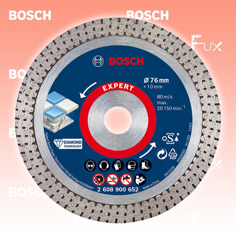Zu "Diamanttrennscheibe" von Bosch Professional Bosch Expert Hard Ceramic Diamanttrennscheibe 76 mm Bestell- und Artikelnummer: 2608900652 Bis zu 2-mal präziser als eine Bosch 2607019473 Ceramic Diamanttrennscheibe Saubere, hochwertige Schnitte mit Bosch Diamond Technology Hochpräzises Schneiden von Hartkeramikfliesen Spanfreies Schneiden mit einem speziell entwickelten durchgehenden Rand Dünne Blätter trennen effizienter und bleiben dadurch kühl geeignet für: Harte Fliesen Harter Stein Technische Daten Durchmesser x Bohrung 76 x 10 mm Schnittbreite 1.5 mm Standard-Ausrüstung Verkaufseinheit 1 Stk. Listenpreis CHF 24.70 Fuxpreis CHF 19.70 inklusive 8.1% MwSt Versand CHF 15.00 Kein Grauimport! Produkt bestellen Verkaufseinheit 1 Stk. 1 Stück 2 Stück 3 Stück 4 Stück 5 Stück 6 Stück 7 Stück 8 Stück 9 Stück 10 Stück 11 Stück 12 Stück 13 Stück 14 Stück 15 Stück 16 Stück 17 Stück 18 Stück 19 Stück 20 Stück 21 Stück 22 Stück 23 Stück 24 Stück 25 Stück 26 Stück 27 Stück 28 Stück 29 Stück 30 Stück 31 Stück 32 Stück 33 Stück 34 Stück 35 Stück 36 Stück 37 Stück 38 Stück 39 Stück 40 Stück 41 Stück 42 Stück 43 Stück 44 Stück 45 Stück 46 Stück 47 Stück 48 Stück 49 Stück 50 Stück Alle Angaben ohne Gewähr und solange Vorrat reicht! Produkt als PDF 20%