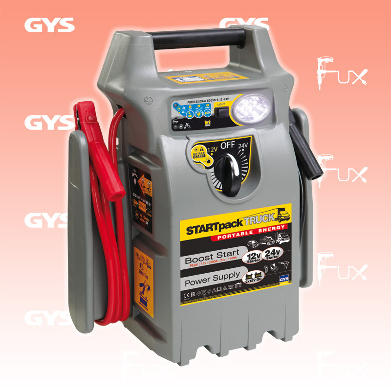 Zu "Booster-Startgeräte" von Gys Gys STARTPACK TRUCK Startgerät - Booster Bestell- und Artikelnummer: 025448 3 in 1: Starter, 12 V Gleichstromquelle, leistungsfähige Zusatzleuchte LED Startet blitzschnell Auto, Wohnmobil, Transporter, Kleinlastwagen mit Diesel- oder Benzinmotoren Stromquelle für netzunabhängige 12V-Versorgung von Fernseher, Lampen, Laptop etc. Integrierte stromsparsame LED-Leuchte für einen langen Einsatz Automatische Ladegerät zum überwachungsfreien Laden der internen Batterien Warnsignal bei Verpolung, Kupferkabel 25mm2, 2 x 1.8m mit isolierten Klemmen 600A Technische Daten Batteriespannung 12 + 24 Volt Startbelastung 12V 750 / 24V 650 A Startbelastung max. 12V 1450 / 24V 1300 A Kapazität 2 x 22 Ah Netzspannung 230 Volt Stromanschluss DC 2A / 12DC Volt Gewicht 16 kg Abmessung BxTxH 38.9 x 22.5 x 50 mm EAN-Code 3154020025448 Zubehör Verbrauchsmaterial Listenpreis CHF 583.30 Fuxpreis CHF 496.00 inklusive 8.1% MwSt Versand CHF 15.00 Kein Grauimport! Produkt bestellen 1 Stück 2 Stück 3 Stück 4 Stück 5 Stück 6 Stück 7 Stück 8 Stück 9 Stück 10 Stück Alle Angaben ohne Gewähr und solange Vorrat reicht!Lehrlingsrabatt? Produkt als PDF AKTION 15%