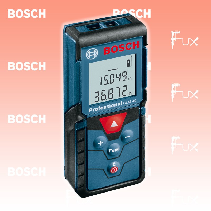 Zu "Laserdistanzmessgeräte " von Bosch Professional Bosch Professional GLM 40 Laserdistanzmessgerät Bestell- und Artikelnummer: 0601072900 Alle relevanten Funktionen im kompakten Design Längenmessung, Flächenermittlung, Volumenberechnung – alles intuitiv bedienbar Beleuchtetes, dreizeiliges Display für beste Lesbarkeit Speicher-Funktion ermöglicht einen einfachen Zugang zu letzten zehn Messungen Robustes, stoßfestes Gehäuse mit Schutzklasse IP54 (Spritzwasser- und Staubschutz) Zuverlässige Mess-Ergebnisse unter allen Umständen erwiesen durch ISO-Zertifizierung Funktionen Indirekte Höhenmessung Technische Daten Laserdiode 635 nm, < 1 mW Messbereich 0,15 – 40 m Laserklasse 2 Messgenauigkeit, typ. +/- 1,5 mm Messzeit, typ. < 0,5 s Messzeit max. 4 s Stromversorgung 2 x 1,5-V-LR03 (AAA) Abschaltautomatik 5 min. Gewicht, ca. 0,09 kg Länge 105 mm Breite 41 mm Höhe 24 mm Maßeinheiten m/cm, ft/inch Batterielebensdauer, Einzelmessungen ca. 5.000 Staub- und Spritzwasserschutz IP 54 Standard-Ausrüstung 2 x 1,5-V-LR03 (AAA) Batterien Herstellerzertifikat Schutztasche Zubehör Listenpreis CHF 108.00 Fuxpreis CHF 92.00 inklusive 8.1% MwSt Versand CHF 15.00 Kein Grauimport! Produkt bestellen 1 Stück 2 Stück 3 Stück 4 Stück 5 Stück 6 Stück 7 Stück 8 Stück 9 Stück 10 Stück Alle Angaben ohne Gewähr und solange Vorrat reicht! Produkt als PDF AKTION 15%