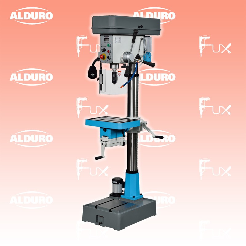 Zu "Säulenbohrmaschinen" von Alduro Alduro BM-46V Säulenbohrmaschine 400V Bestell- und Artikelnummer: 659286 Stufenlose elektronische Drehzahlregulierung 1-touriger Motor 2 stufenlose Drehzahlbereiche mit Keilriemenumstellung Mit Schnellspannbohrfutter 16mm, Splitterschutz, Not-/ Ausschalter Drehbarer Bohrtisch mit Parallelnuten und integriertem Spannstock über Zahnstange verstellbar Integriertes Kühlmittelsystem schmiert und kühlt die Bearbeitungswerkzeug für eine lange Lebensdauer Sicherheitssystem gegen automatischen Start der Maschine Elektrisch gesicherter Riemendeckel und Splitterschutz Technische Daten Motorspannung 400 Volt Motorleistung 1.5 kW Motor Kühlwasserpumpe 0.10 kW Bohrspindel MK/CM3 Bohrleistung Stahl Ø 30 mm Bohrhub 125 mm Drehzahl stufenlos 100 - 680 / 400 - 2'500 min-¹ Tischbelastung 60 kg T-Nutenbreite 14 mm Spannstockbreite 120 mm Spannstocköffnung 75 mm Gewicht 198 kg Standard-Ausrüstung Schnellspannbohrfutter 1-16mm, B18 Kegeldorn MK3 / B18 Schraubstock LED Arbeitsleuchte Listenpreis CHF 4'490.00 Fuxpreis CHF 3'951.00 inklusive 8.1% MwSt Frankolieferung Kein Grauimport! Produkt bestellen 1 Stück 2 Stück 3 Stück 4 Stück 5 Stück 6 Stück 7 Stück 8 Stück 9 Stück 10 Stück Alle Angaben ohne Gewähr und solange Vorrat reicht!Lehrlingsrabatt? Produkt als PDF AKTION 12%