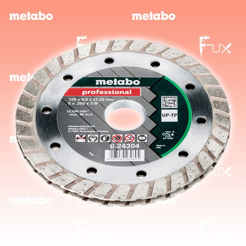 Zu "Qualitätsklasse »professional« / UP-T" von Metabo Metabo Diamanttrennscheibe 125 mm Bestell- und Artikelnummer: 624304000 Bestens geeignet für Fugen in Putz und Mauerwerk Gesinterter Schneidrand Segmenthöhe: 10,0 mm; Scheibenbreite: 6,0 mm; Arbeitshöchstgeschwindigkeit 80 m/s Technische Daten Durchmesser x Bohrung 125 x 22.23 mm Segmentabmessungen 10 / 10 mm Max. Drehzahl 13200 /min Standard-Ausrüstung Verkaufseinheit 1 Stk. Listenpreis CHF 53.00 Fuxpreis CHF 45.00 inklusive 8.1% MwSt Versand CHF 15.00 Kein Grauimport! Produkt bestellen Verkaufseinheit 1 Stk. 1 Stück 2 Stück 3 Stück 4 Stück 5 Stück 6 Stück 7 Stück 8 Stück 9 Stück 10 Stück 11 Stück 12 Stück 13 Stück 14 Stück 15 Stück 16 Stück 17 Stück 18 Stück 19 Stück 20 Stück 21 Stück 22 Stück 23 Stück 24 Stück 25 Stück 26 Stück 27 Stück 28 Stück 29 Stück 30 Stück 31 Stück 32 Stück 33 Stück 34 Stück 35 Stück 36 Stück 37 Stück 38 Stück 39 Stück 40 Stück 41 Stück 42 Stück 43 Stück 44 Stück 45 Stück 46 Stück 47 Stück 48 Stück 49 Stück 50 Stück Alle Angaben ohne Gewähr und solange Vorrat reicht!Wiederverkäufer werden?Lehrlingsrabatt? Produkt als PDF AKTION 15%